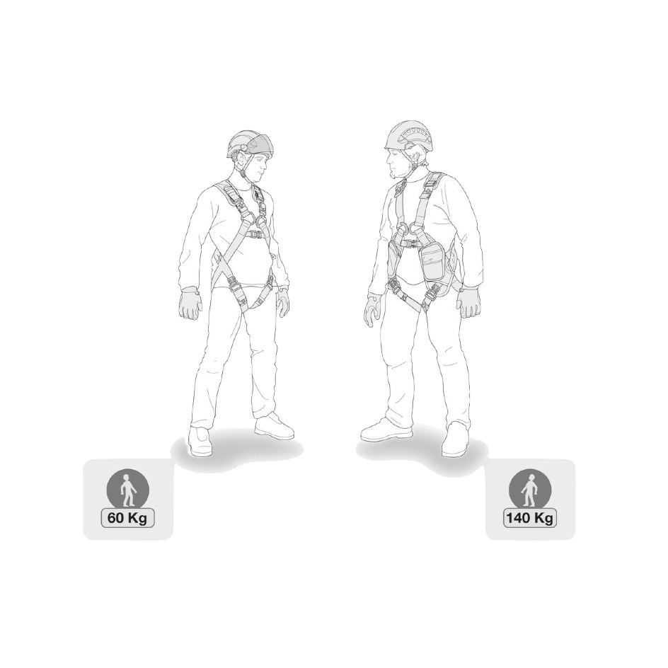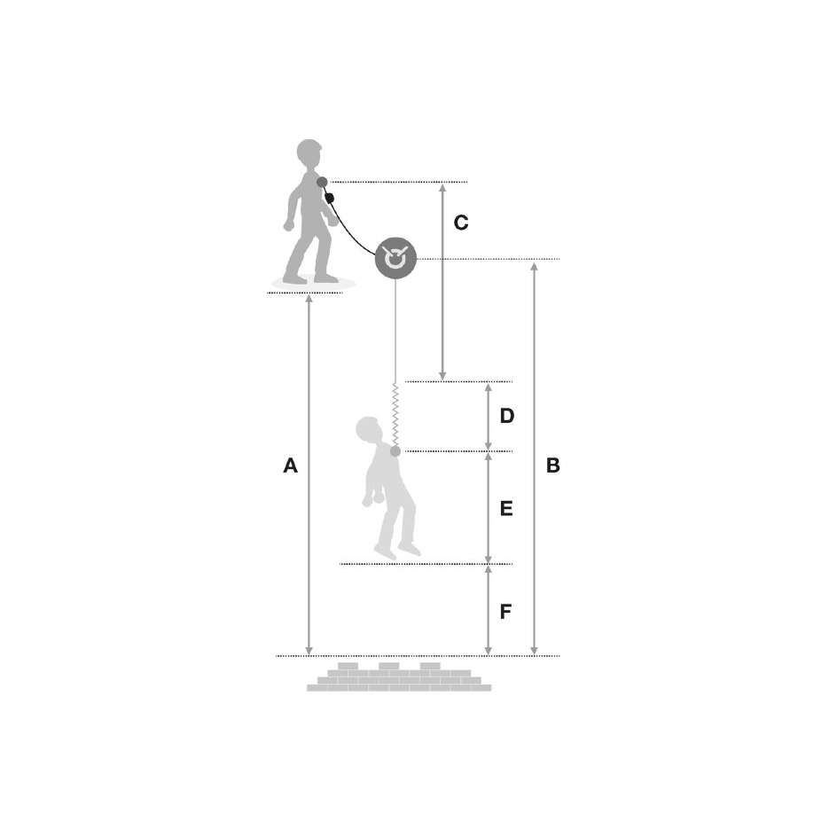 – Durch das progressive Aufreißen des Gurtbands des Falldämpfers wird der auf die anwendende Person ausgeübte Fangstoß reduziert.