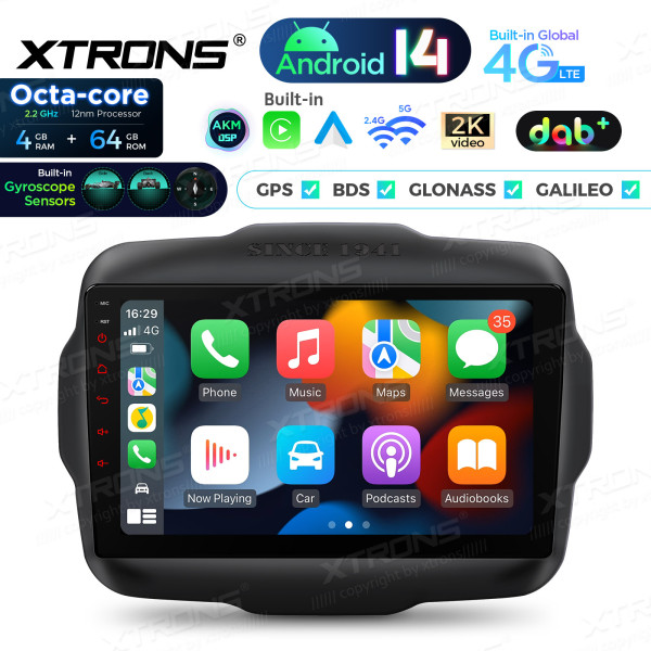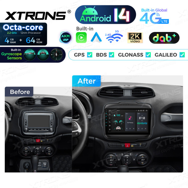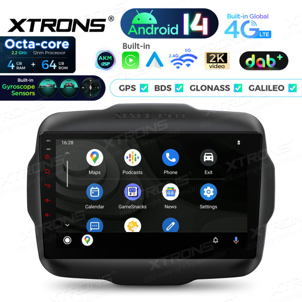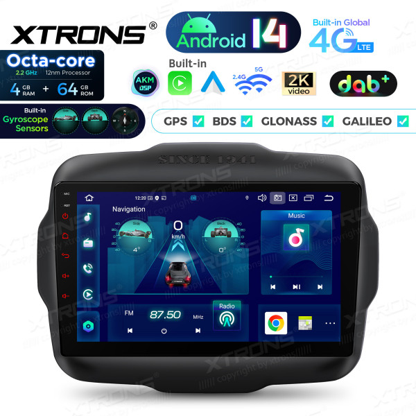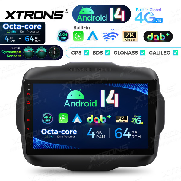 PXP94RGJGDAB 9 Zoll 4+64 GB Android 14 Autoradio-Multimediaplayer Eingebautes DAB+ AKM DSP Global 4G IPS Gyroskopsensoren für Jeep